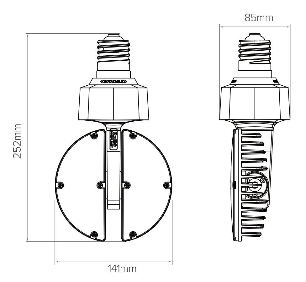 | Model | Power | Light efficiency | Luminous Flux | Input Voltage | Dimension | IP code | Warranty |